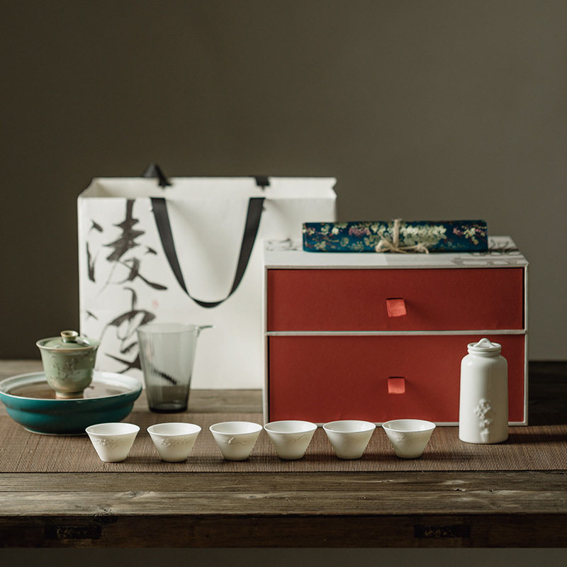 璞玉万里河山茶具套装2026新款整套茶杯轻奢高档家用功夫盖碗白瓷