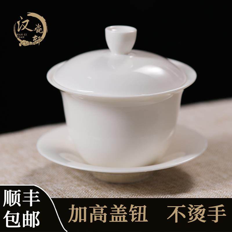 羊脂玉白瓷盖碗茶杯单个家用泡茶碗三才盖碗盖子功夫茶具大号高档
