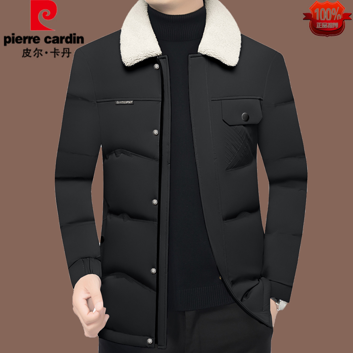 皮尔卡丹翻领羽绒服男中年冬季新款加厚保暖鹅绒羊毛领爸爸装外套