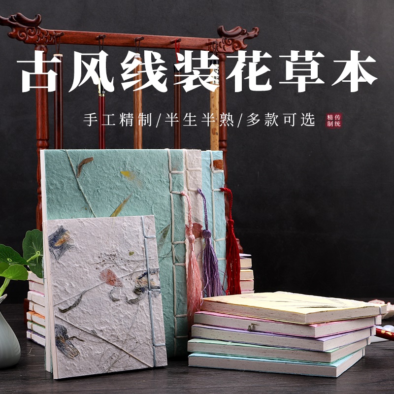 三味斋花草宣纸云龙皮纸信纸小楷毛笔硬笔复古创意精美古风植物标本干花记事本手抄本手工装订线装本
