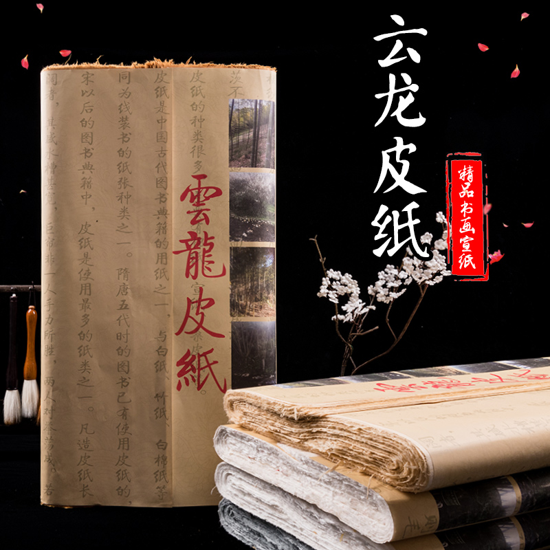 手工清水云龙皮纸国画专用云龙宣纸书法专用作品纸六四尺仿古白纤维茶叶宣纸包装半生熟本色云龙构皮纸山麻纸