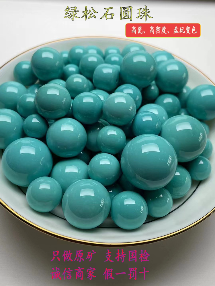 湖北十堰天然原矿高瓷无优化绿松石龙珠圆珠散珠雕刻单珠手串配珠