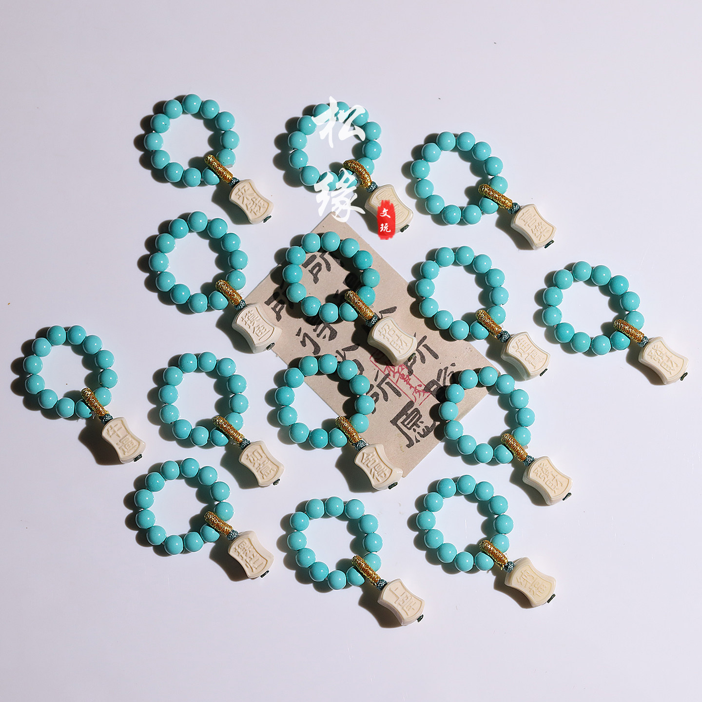 湖北秦古原矿高瓷绿松石龙珠单珠散珠白蓝回纹珠雕刻圆珠金刚配饰