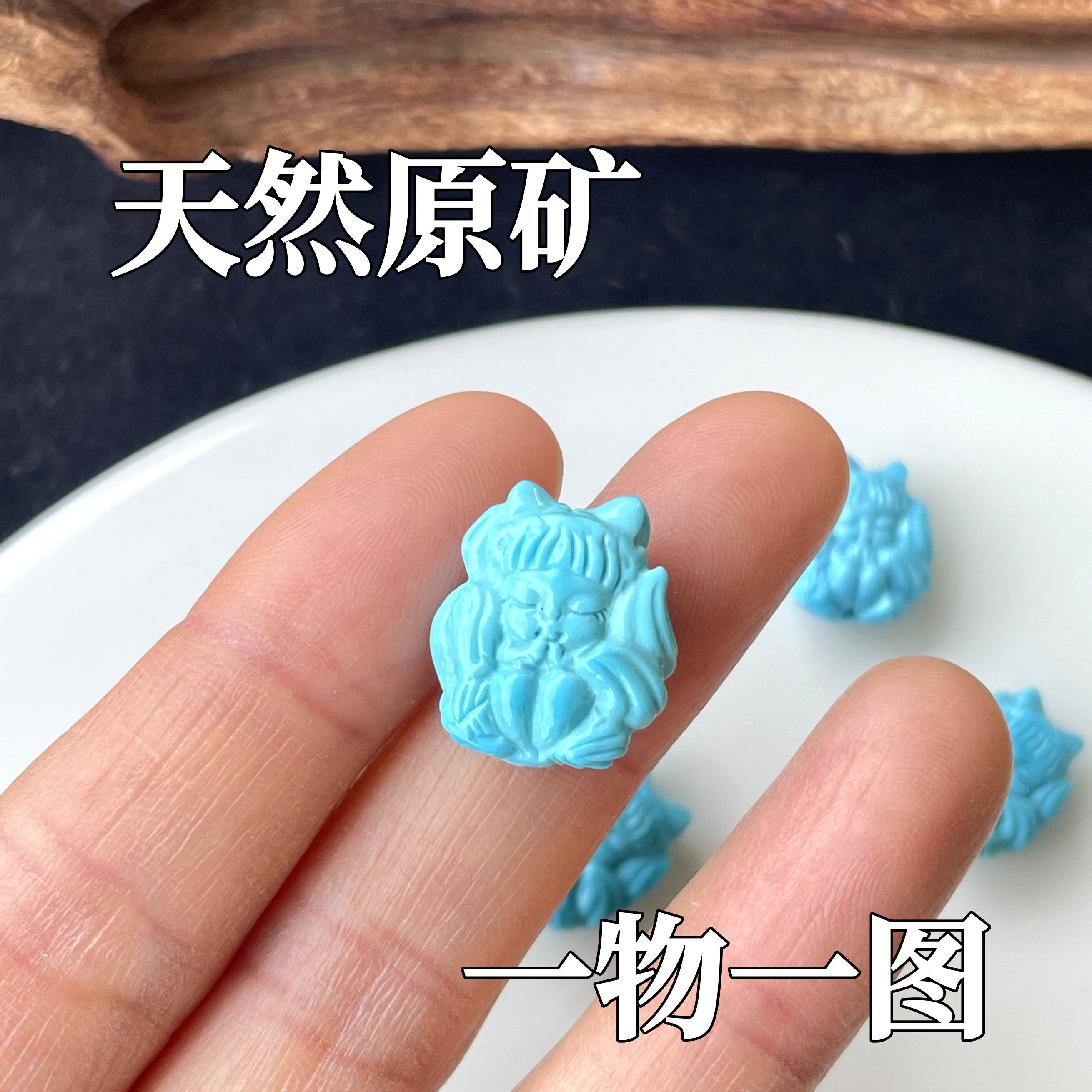 帝廷 原矿天然 湖北绿松石 高瓷蓝配珠散珠 星球珠带你私奔到月球