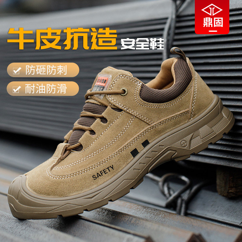 劳保鞋男款夏季电焊工防砸防刺穿轻便带钢板工地钢包头牛皮工作鞋