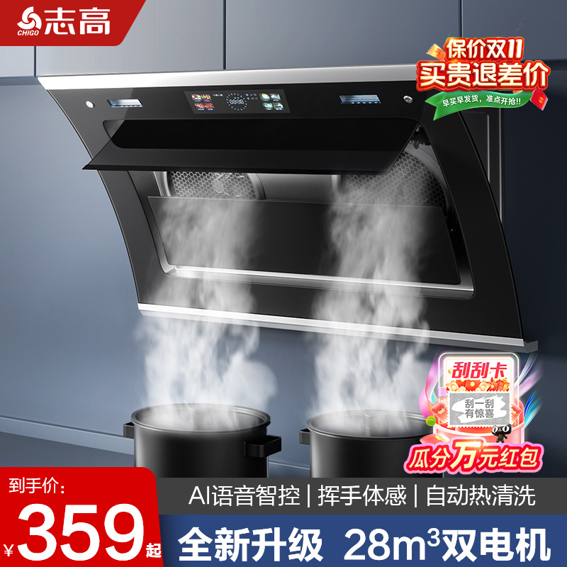 志高油烟机家用双电机大吸力厨房抽油烟机侧吸式自动清洗吸油烟机