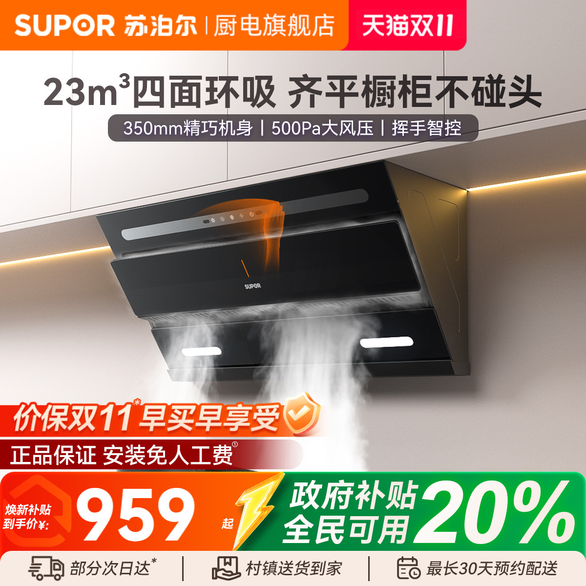 【爆款】苏泊尔抽油烟机家用厨房侧吸式小型脱排租房吸油机大吸力