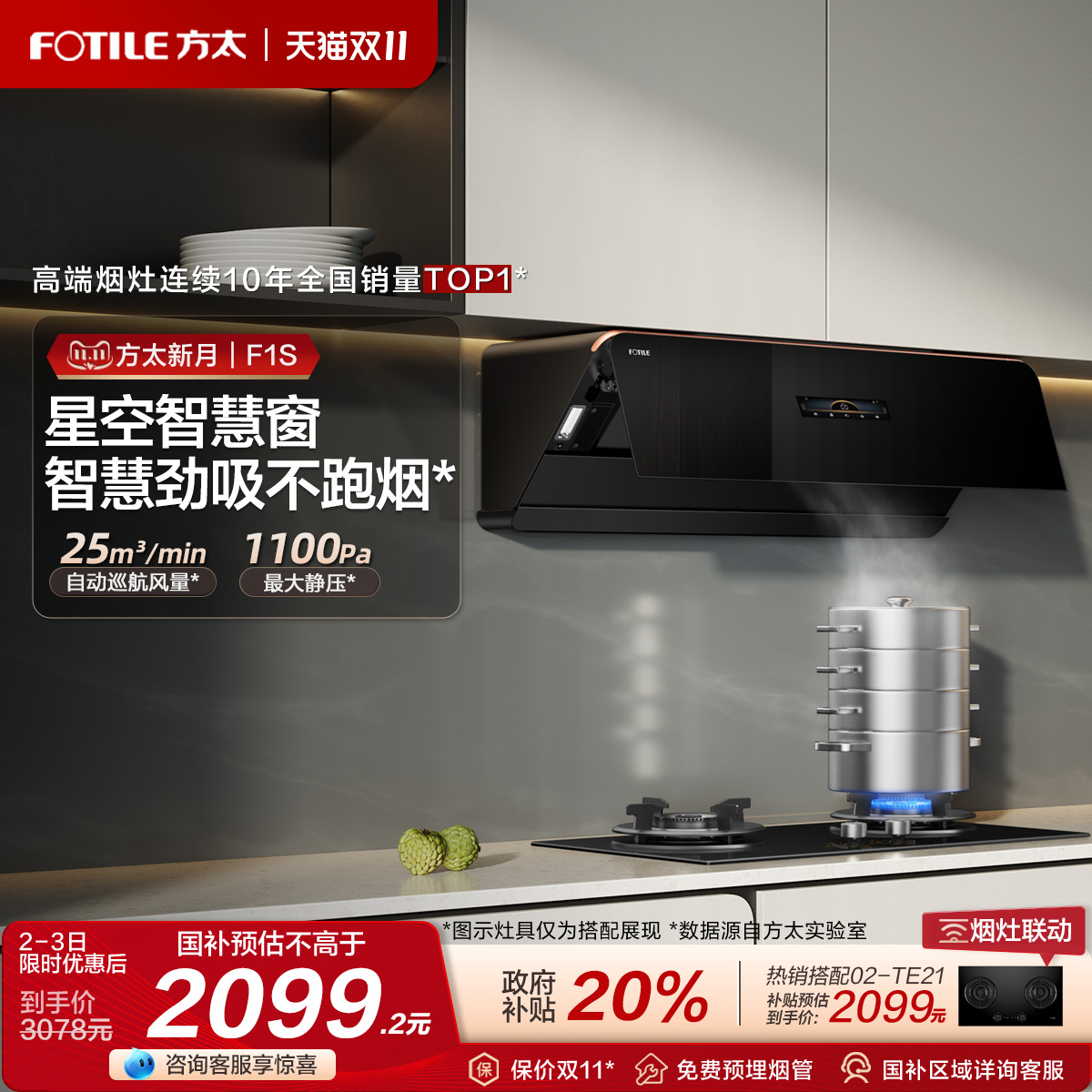 [方太新月]F1S抽吸油烟机抽风机侧吸式大厨房吸力家用官方旗舰店