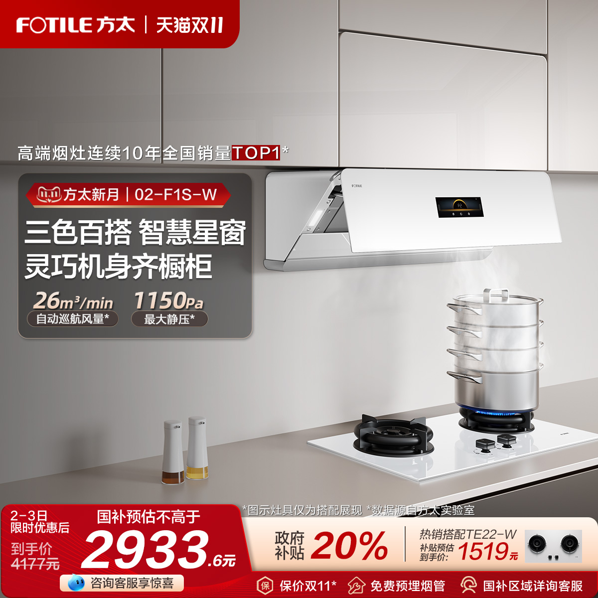 [方太新月]02-F1S白色抽吸油烟机侧吸式厨房吸力家用官方旗舰店
