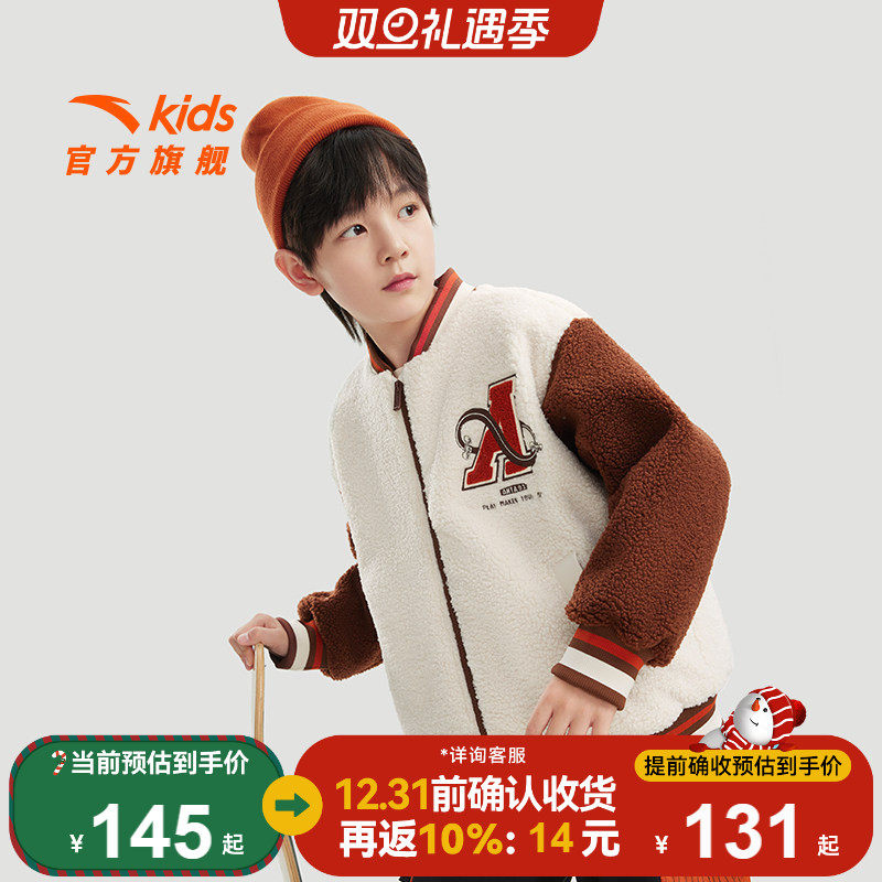 安踏儿童装男童针织羊羔绒外套2025春秋新款卫衣保暖加绒运动上衣