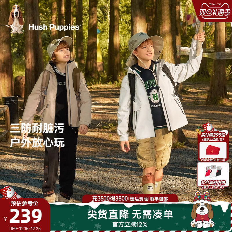 暇步士童装儿童风衣春秋装新款到男大童户外运动上衣三防连帽外套