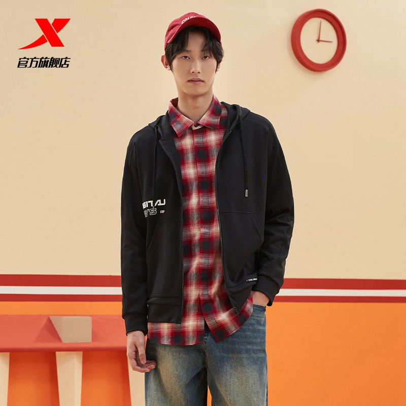 特步运动外套男2025春秋正品宽松连帽开衫夹克男上装977329940207