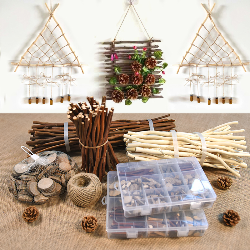 树枝装饰干枝松木片麻绳手工创意DIY手工材料松果幼儿园学校环创