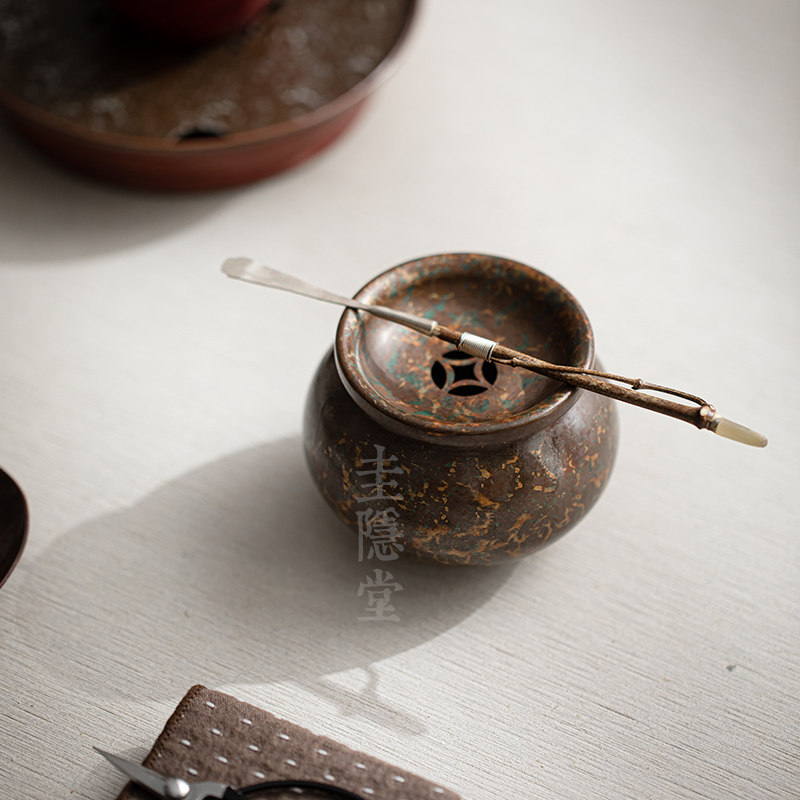 草木祠四方铁艺建水带盖茶洗桌面茶渣缸渣斗中式复古壶承水盂花插