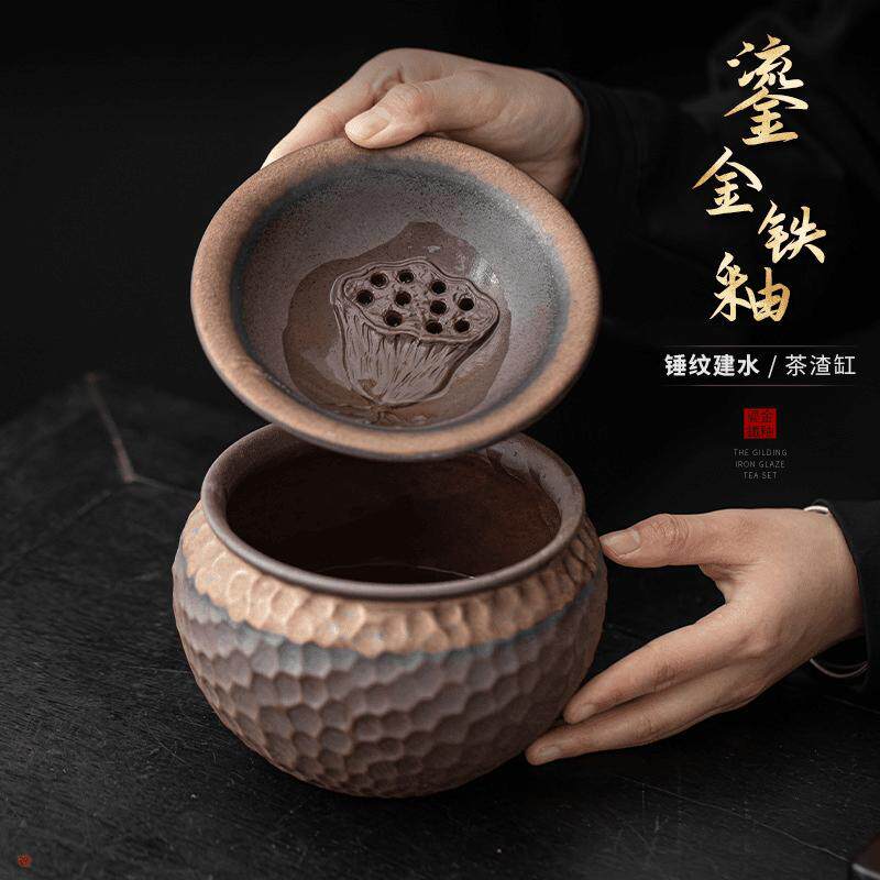 复古窑变茶渣缸办公家用简约杯洗水盂创意大小号茶洗陶瓷中式水洗