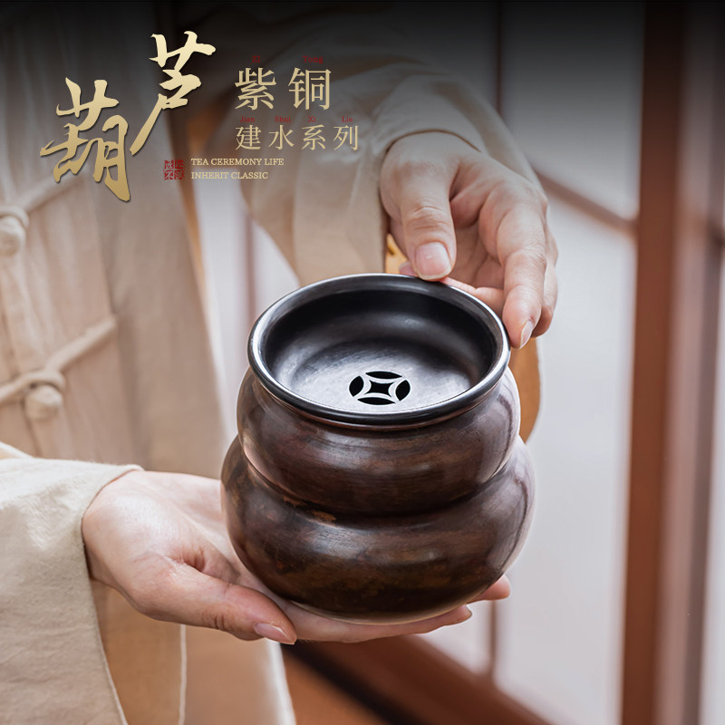 手工紫铜葫芦建水复古纯铜家用茶洗茶渣缸带盖水盂茶道配件废水缸