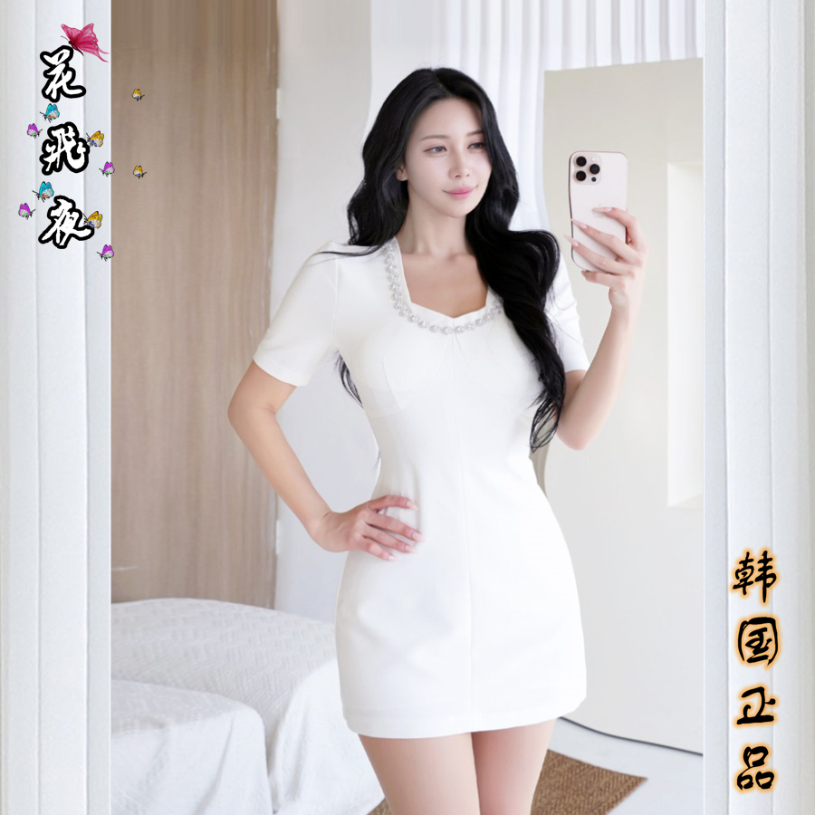 【花飞夜】韩国代购2025年夏款短袖修身包臀连衣裙优雅短款正装裙
