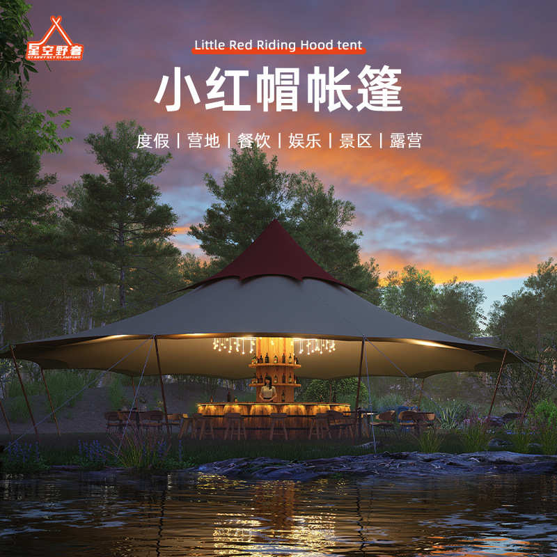 户外营地帐篷景区接待餐饮活动小红帽篷房草帽印第安民宿酒店帐篷