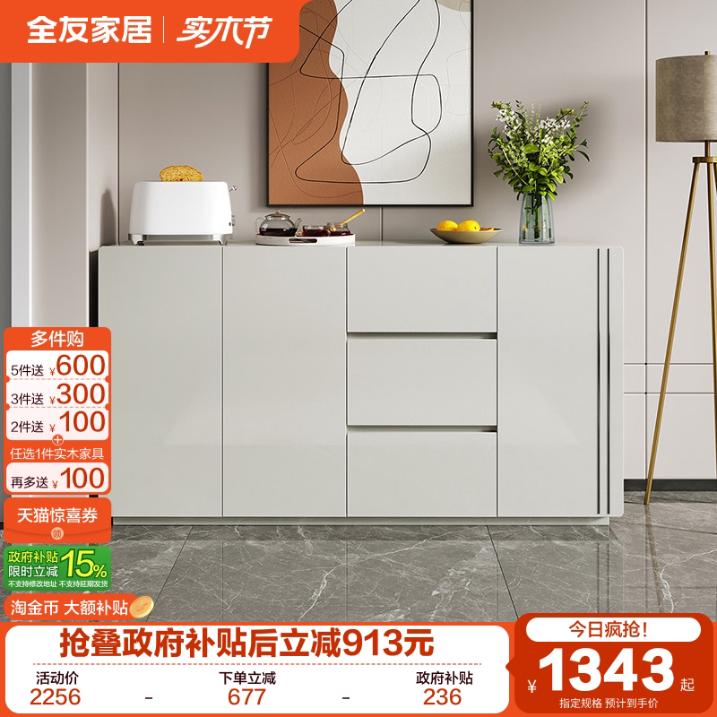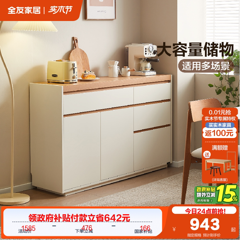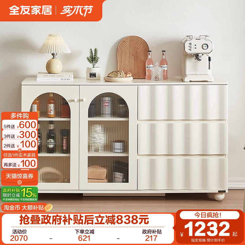 全友家居原木奶油风餐边柜客厅家用靠墙茶水备餐柜卧室床尾置物柜