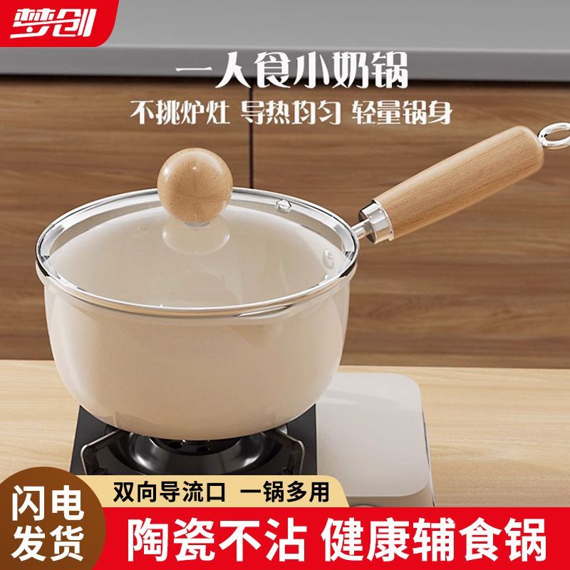 陶瓷奶锅家用不粘锅宝宝辅食一人食小锅泡面炒锅煎煮通用煲汤汤锅