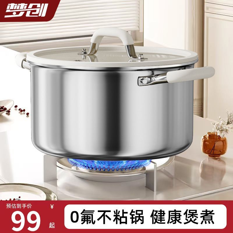 梦创304不锈钢陶瓷蒸锅食品级家用加厚煲汤汤锅电磁炉燃气通用