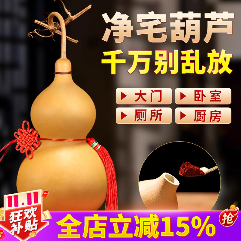 葫芦摆件镇宅招财带龙头底座天然开口真葫芦挂件门对门客厅中国结
