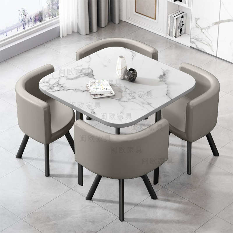 轻奢北欧岩板洽谈小方桌子售楼处商务休闲奶茶店阳台接待桌椅组合