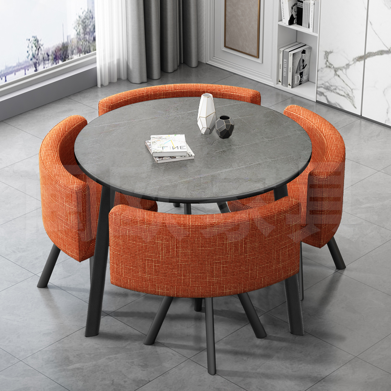 岩板餐桌洽谈接待桌椅组合售楼处奶茶店会客网红休闲大理石小圆桌