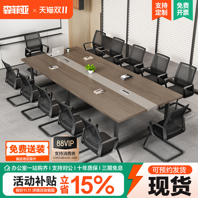 圣黎会议室大型会议桌高级感长条桌现代轻奢办公治谈接待桌椅组合