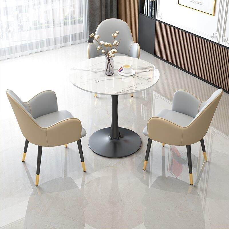 轻奢北欧岩板洽谈小圆桌子售楼处商务休闲售楼部阳台接待桌椅组合