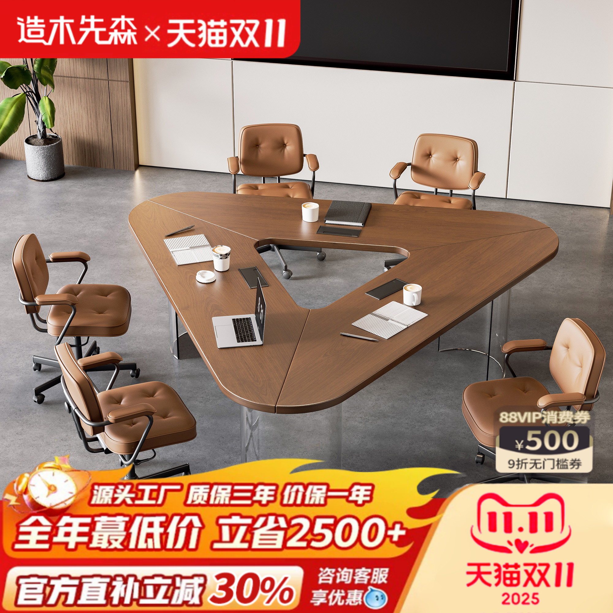 实木会议桌轻奢高级感小会议室接待桌椅组合现代简约三角形洽谈桌