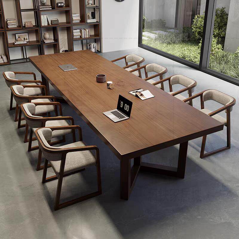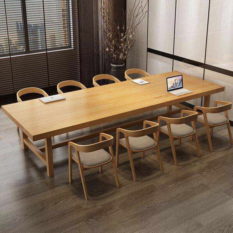 简约实木会议桌长条桌会客接待桌椅组合原木大板工作台办公培训桌