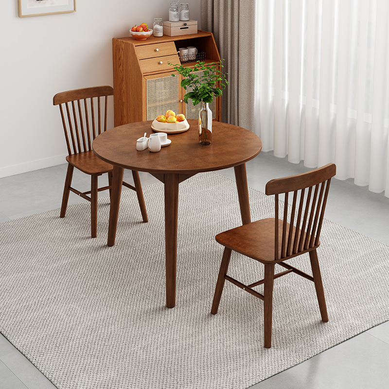 实木圆桌吃饭桌子家用饭桌洽谈桌接待桌椅组合胡桃小户型圆形餐桌