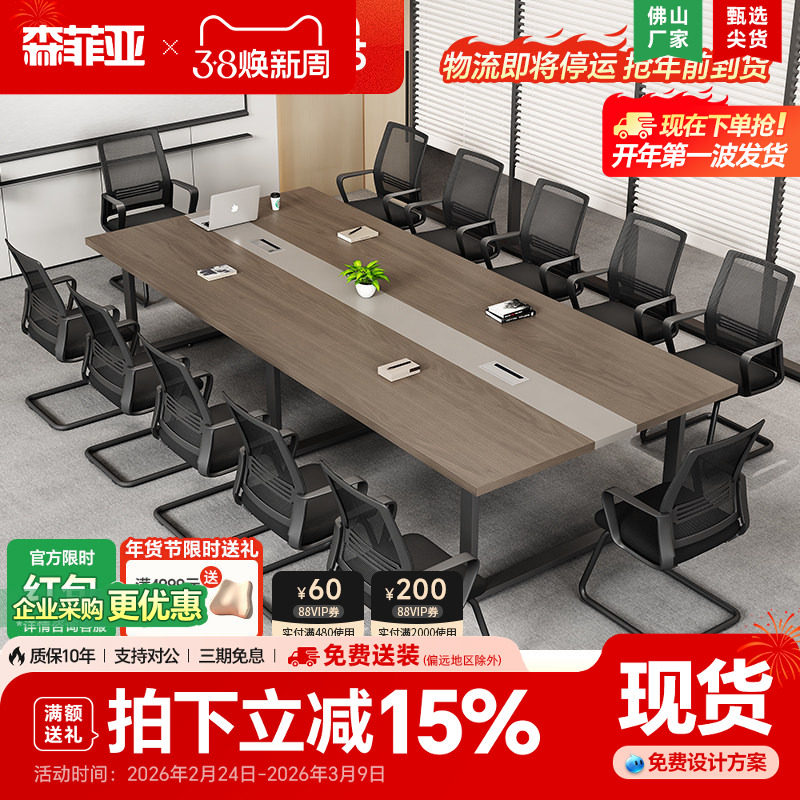 会议桌长桌现代简约接待洽谈桌子办公室长条桌会议室办公桌椅组合