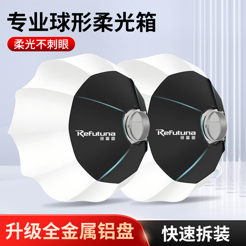 65CM球形柔光箱柔光球直播补光灯柔光罩专业影棚摄影灯笼快装保荣口适用闪光灯常亮灯通用罩子