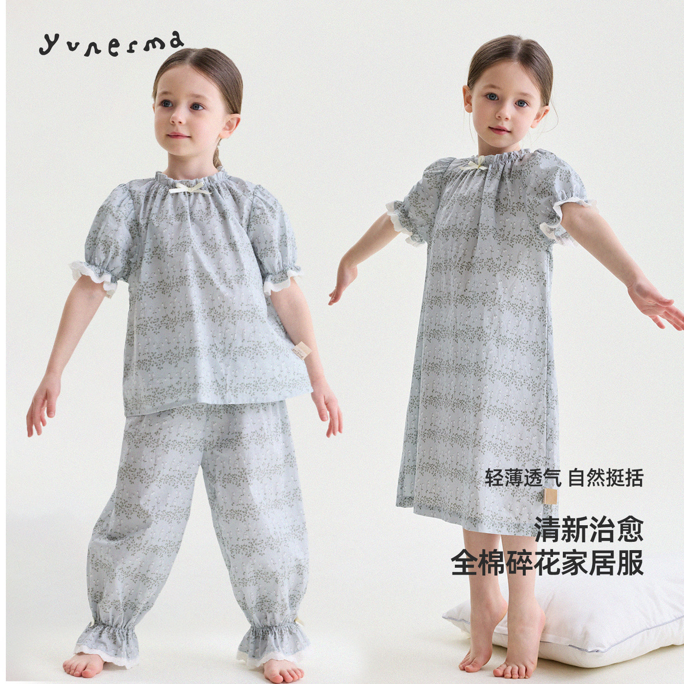 允儿妈女童姐妹款法式碎花睡衣睡裤套装宝宝小众睡裙儿童家居服潮