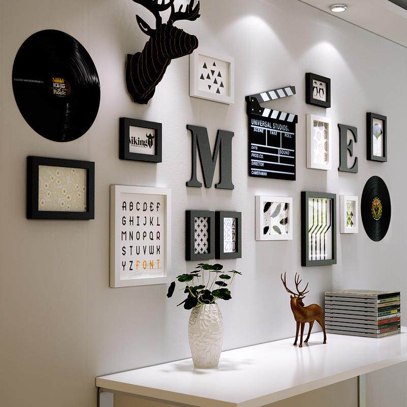 欧式客厅照片墙餐厅墙面装饰组合北欧相框墙挂墙免打孔房间相片墙