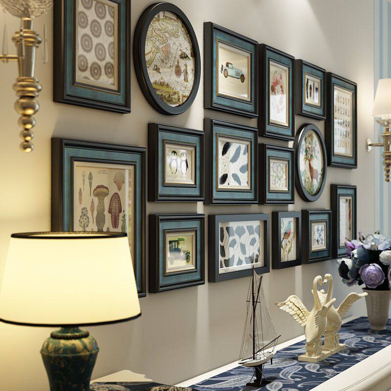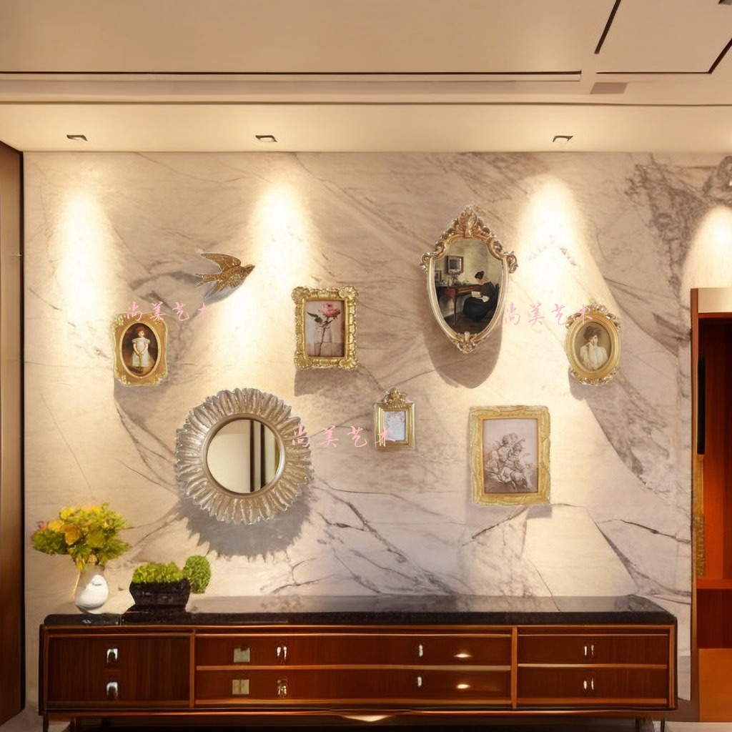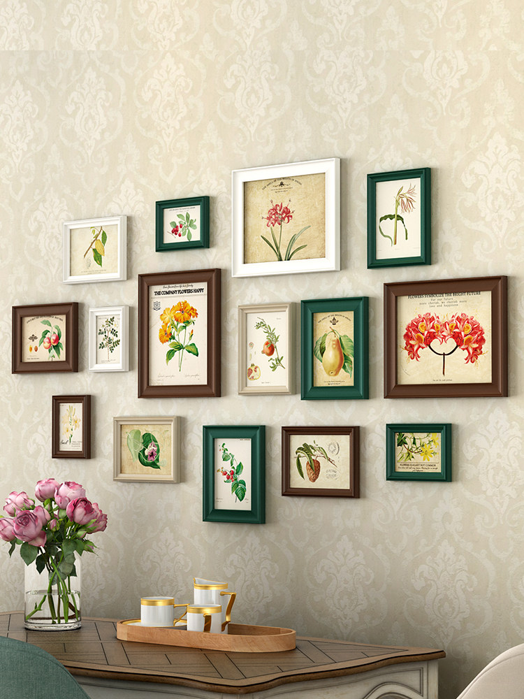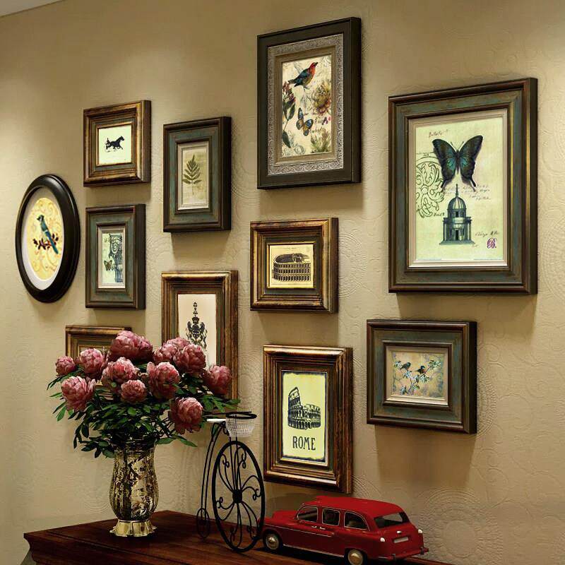 欧式复古实木照片墙餐厅背景墙现代轻奢客厅沙发装饰画框相框挂墙