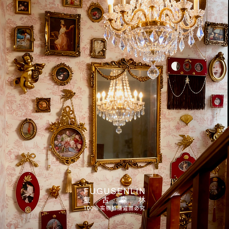 欧式金色相框组合挂画复古照片墙小众装饰画墙面摆件复古相框镜子