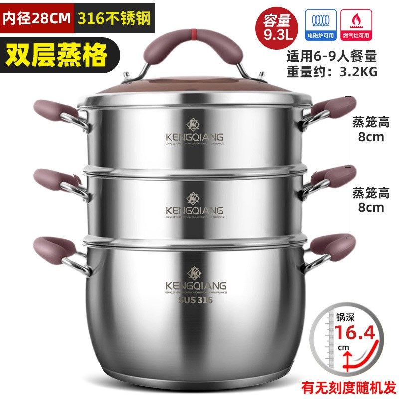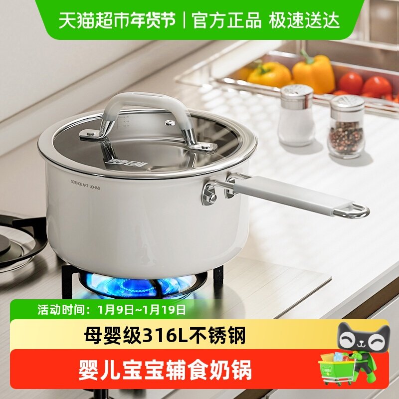 梦创母婴级316L不锈钢婴儿宝宝辅食奶锅蒸煮炖粥锅一人食汤锅