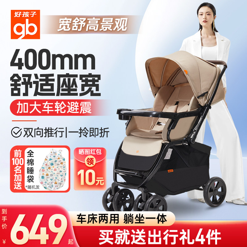 gb好孩子婴儿推车可坐可躺高景观全蓬加宽强避震宝宝车可折叠C400
