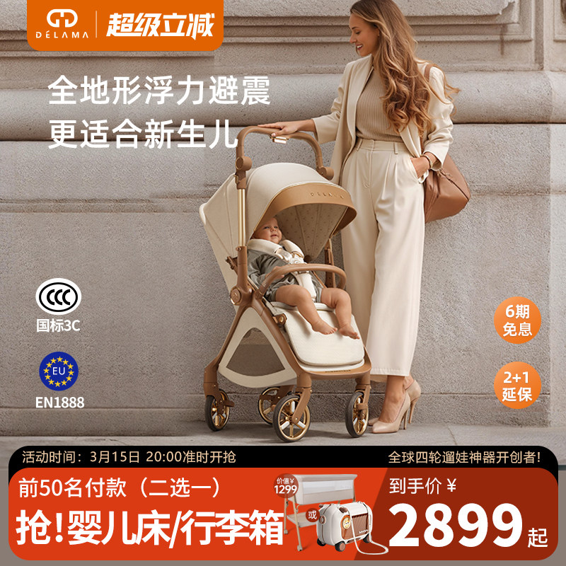 德拉玛D3云野婴儿车推车可坐可躺高景观双向折叠护脊避震新生儿宝