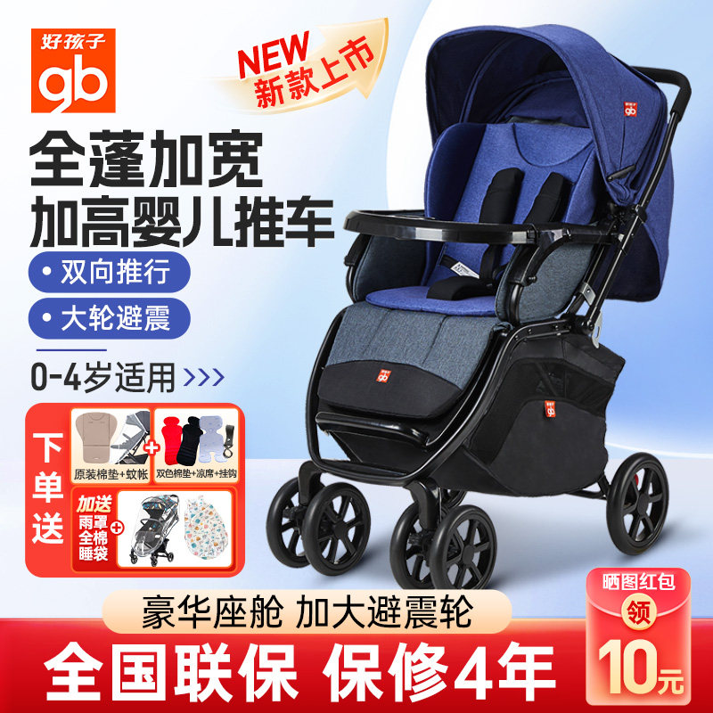 gb好孩子婴儿推车加高加宽可坐可躺高景观全蓬双向强避震宝宝推车
