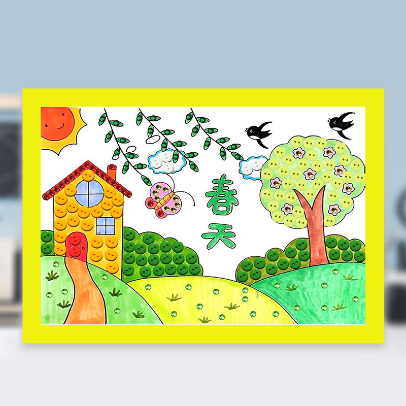 春天主题纽扣画diy手工材料包幼儿园环创半成品亲子手工作业带框