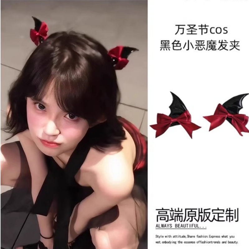 2025万圣节cos小恶魔蝴蝶结发夹头饰装扮搞怪道具立体顶夹对夹
