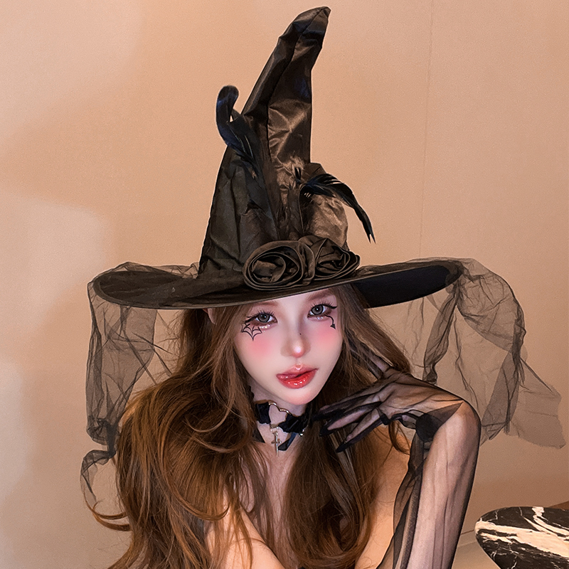 万圣节头饰网纱羽毛帽子女巫帽服装cos装扮穿搭搞怪拍照道具装饰
