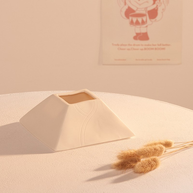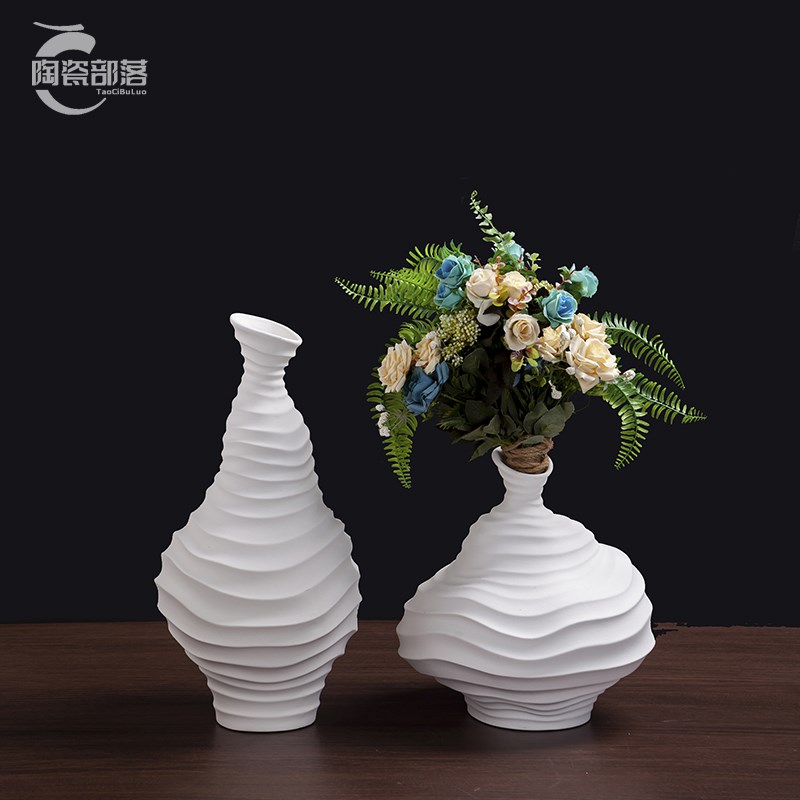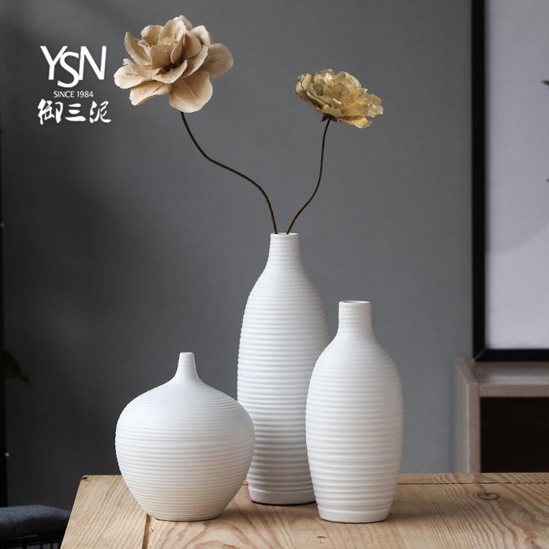 粗陶白瓷插鲜花干花花瓶简约现代白色插花家居客厅装饰品陶瓷摆件