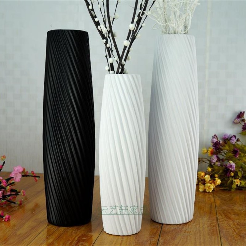 落地大花瓶高简约水培塑料仿陶瓷白色黑欧式居家干花插花客厅装饰