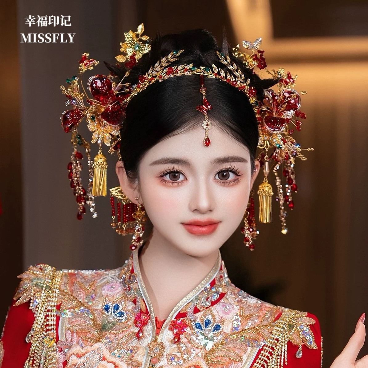 - 新娘头饰红色