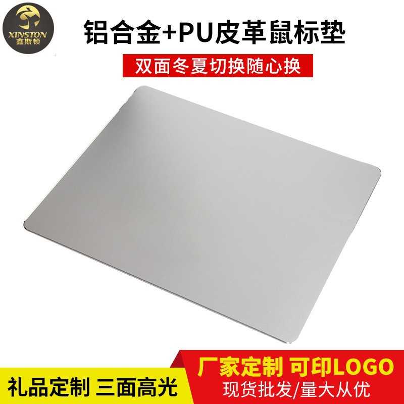 厂家铝合金鼠标垫大号双面皮革防滑金属鼠标垫广告礼品批发滑鼠墊
